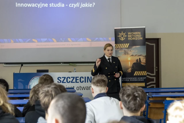 - Spotkanie z kapitan żeglugi wielkiej, Klaudią Skotnicą, która jest absolwentką naszej uczelni i podzieliła się swoimi doświadczeniami zawodowymi, inspirując przyszłych studentów do kariery na morzu.